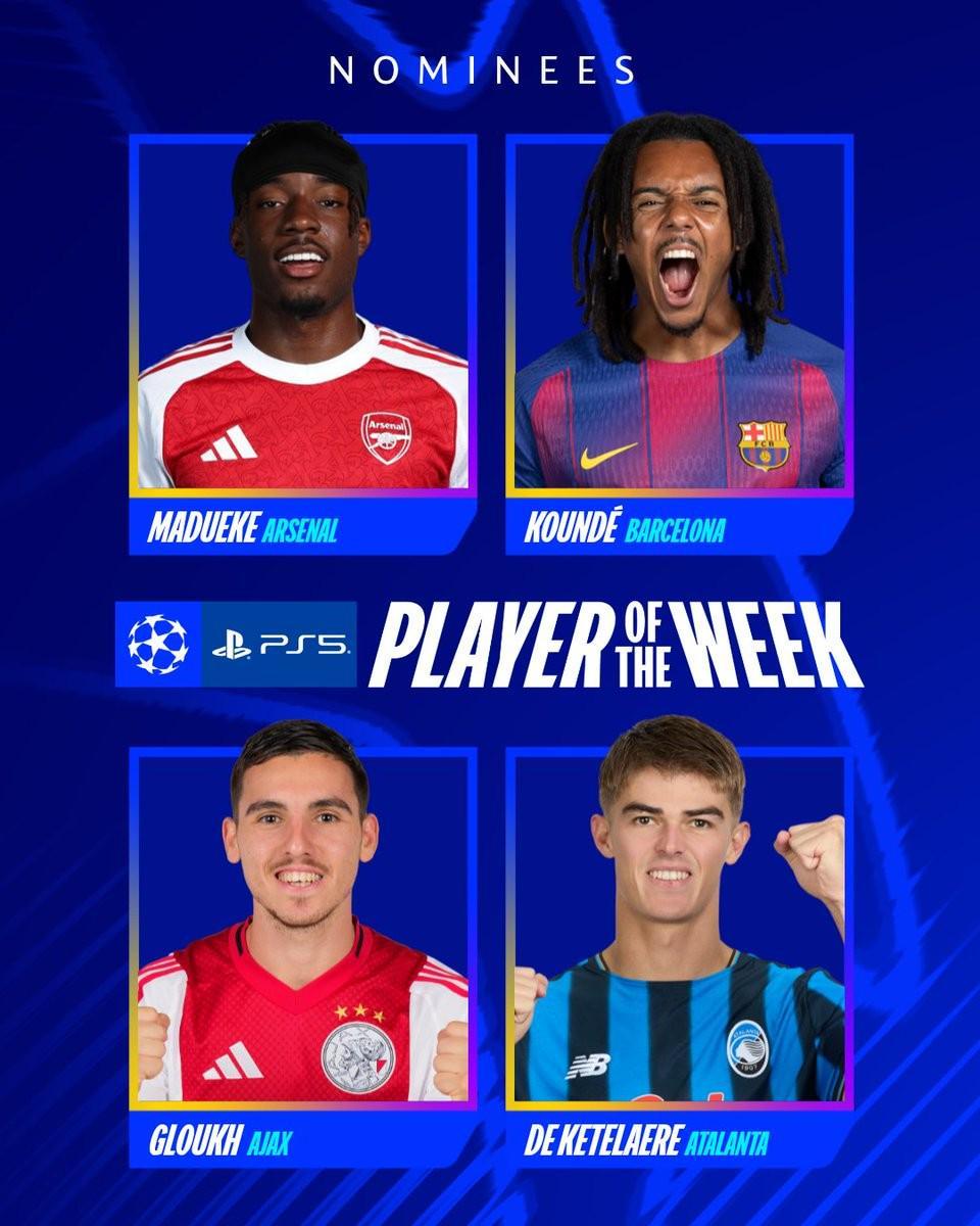 欧冠本周最佳球员候选:马杜埃凯、孔德、德凯特拉雷、格洛赫