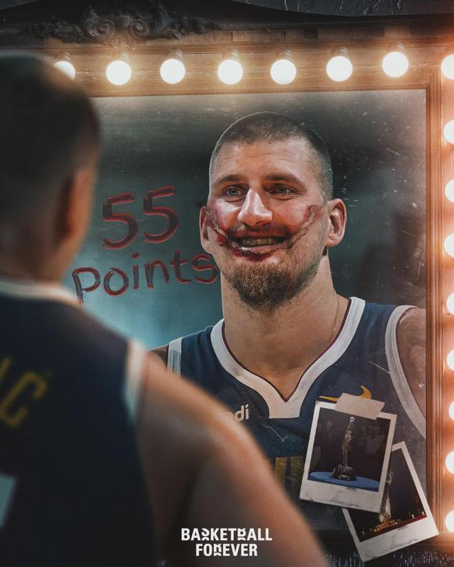 6场比赛,约基奇场均可以拿到35.8分12.0篮板11.0助攻,投篮命中率73.9%,三分命中率55.6%,真实命中率高达83.0%——这,真的是人类吗?