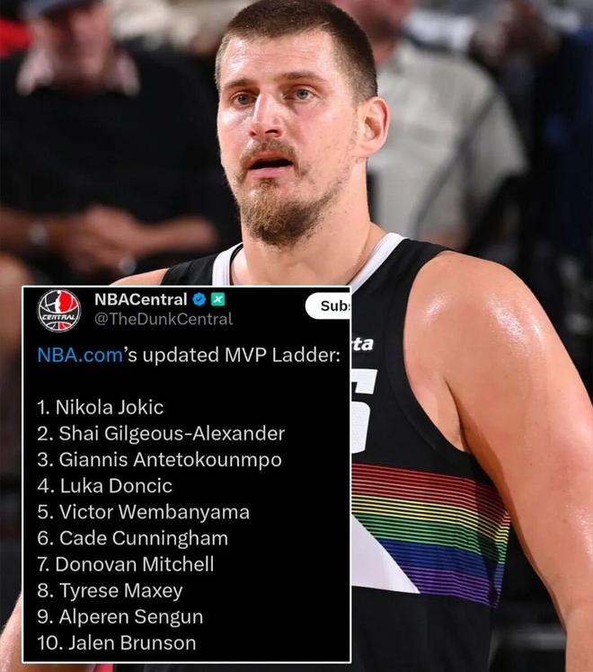 如此炸裂的表现,约基奇反超字母哥、亚历山大,重夺MVP榜第一也就不意外了。