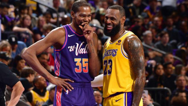 那明年的情况还会是这样吗?没有人能够这个问题的答案,但我们可以看看詹姆斯在38岁时的表现。在2022-23赛季,38岁的詹姆斯场均可以得到28.9分、8.3个篮板和6.8次助攻,真实投篮命中率为58.3,球场正负值为+6.1,如果我们将这样的数据应用到杜兰特的身上,那么我们就可以得出结论,杜兰特明年仍将是明星级的球员。