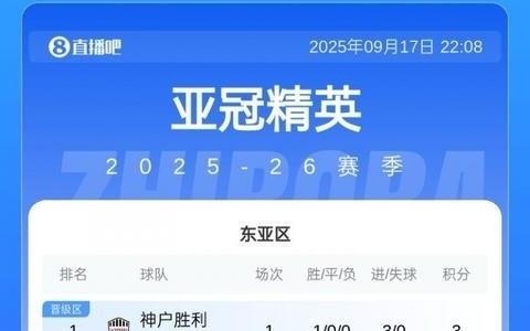 亚冠东亚区积分榜:中超3队全败均积0分,海港丢3球暂垫底
