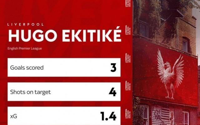 埃基蒂克加盟利物浦以来5场英超皆首发,射正4次打进3球
