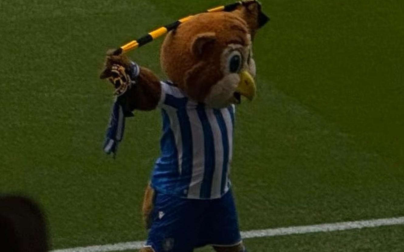 与球迷们在一起,谢周三的吉祥物也加入了对老板的抗议行动中