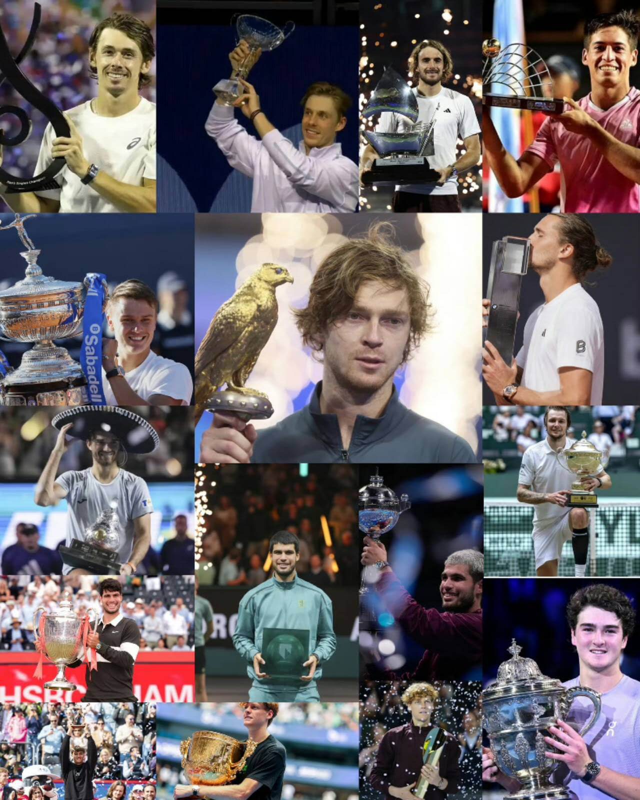 昨日赛事官方发布的海报上球星云集,主咖位置是辛纳,他两边分别是在本届美网以光头亮相的阿尔卡拉斯和德国球员兹维列夫。弗里茨、谢尔顿、德雷珀、德米纳尔、卢布列夫等名将也占据了醒目位置。