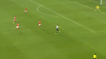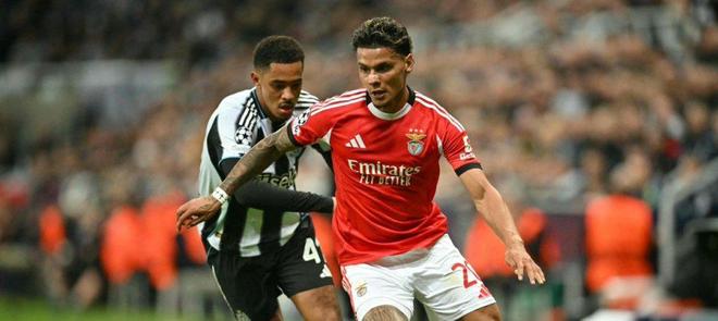 比赛刚开打,本菲卡的表现其实并不差。穆帅一如既往地排出防守反击阵型,利用中场的紧凑站位去压缩纽卡斯尔的推进空间,但随着比赛的深入,纽卡一步步进入了状态,多次冲击本菲卡后防,第32分钟,墨菲右路断球推进,横传门前,戈登高速插上推射空门得手,纽卡1-0领先。