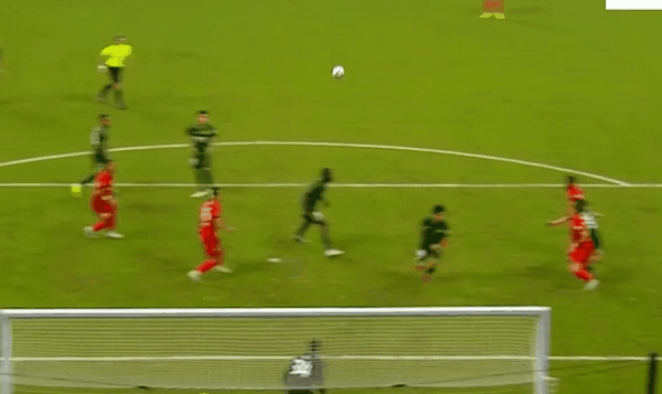 第31分钟,莱昂纳多吸引多人的防守,刘若钒前插脚下发软,被侯森奋力扑出,跟上的维塔尔补射偏出球门。随后的五分钟里,加布里埃尔、法比奥连续破门,但是均因越位和手球,被判无效。补时阶段,莱昂纳多晃开防守,一脚劲射意外的被队友梅伦多挡出。