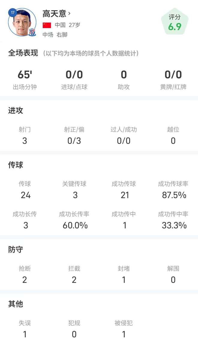 高天意全场比赛具体数据: