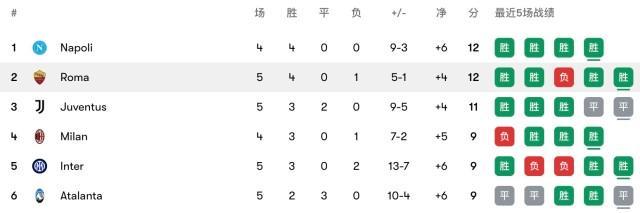 意甲第5轮,罗马主场2比0轻取维罗纳,上半场多夫贝克首开纪录,下半场索莱锁定胜局。罗马本赛季在加斯佩里尼的执教下开局出色,前5轮4胜1负,进5球仅失1球——队史第4次意甲前5轮失球≦1——先赛一场的情况下暂时甚至积分榜第2。