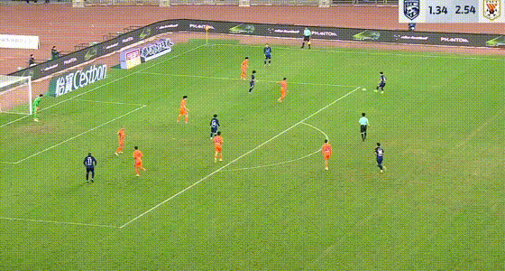 第38分钟克雷桑直塞,泽卡拿球突入禁区小角度射门打进,山东泰山客场1-0领先。