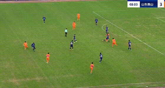 第45+4分钟,泽卡右路拿球横敲,刘洋包抄到位将球送进大门,山东泰山2-0领先。